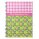 En anteckningsbok för söt Spiral som du kan anpassa, med en mönster av rosa, gult och blåa primerer, som har ett matchande rosa-band där du kan lägga till text om du vill, en del av samlingen för "Primära tecken" för Posh & Painterly.