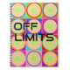 Anteckningsbok med färgglada cirklar och "OFF LIMITS" på framsidan