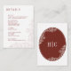 Tropical red anthurium flowers and dark red text wedding details and reply card. Modern and romantic illustrations by Custom Wedding Invitation Artist Alexa's Illustrations