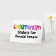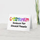 I en anslåcrayonstilsort med ljusa färger de ord"Creationism" stativen ut ovanför den mindre ord "vetenskap för dumt folk" i svart text på ljusa skjortor och vit på mörka skjortor.