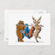 Satisad hjort- och malbjörn bär en jägare i misstro på en träpåle mellan dem! Lönsamma T-shirts och gåvor för jakt på djur älskare och jaktdjur för sport!