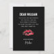 Om du vill bryta upp med en pojkvän eller om du nyligen har gjort ett avbrott ska du skicka det här Helgdag mot Valentines day Ex Boykompis Funny. Det är personlig med din ex pojkvän eller ex make namn. Utformningen är ett minimalistiskt stil på framsidan av det svarta kortet. Den lustiga dikt i kort är "det här är den sista kyssan från mig som du kommer att se så att du inte behöver vara blå att du vet att du inte är sann nu jag inte vill ha dig" i vitt, enkelt brev på svart bakgrund. En röd kyss är i slutet av dikt. Insidan av kortet har anpassade sarkastiskt hälsning. Namnteckning slutar med "bra riddans" och ditt namn i trendigets manuskript. KLICKA PÅ ALTERNATIVET ANPASSAD MALL OCH FÖLJA PROMPTS.