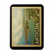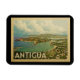 Antigua-design i Vintage resor stil med en tropisk öscen med hav och blå himmel.