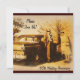 En sepiafärgad skissporträtt teckning skapad från en fotografisk bild i ett gammalt fotoalbum. Ett välklätt par står bredvid en antik bil någon gång på 40-talet kanske. Stilig mode av dagen med hattar och kostymer.