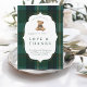Denna vintage-utförande nallebjörn-baby shower-design har en handmålad nalleillustration inramad i en elegant dekorativ etikett och placerad mot en rik grön rutig bakgrund. Inspirerad av ärvda barnkammare och klassiska polo-tema-firanden känns designen tidlös, förfinad och genomtänkt.