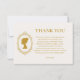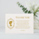 Visa din uppskattning med tidlös elegans med hjälp av vårt Vintage Blue Regency Cameo Bridal Shower Tacksamt-kort, vackert designat för att återspegla charmen i en viktoriansk Regency-firande. Med en graciös siluett av en kvinna i guld cameo, en utsmyckad vapensköld i guld och en romantisk blå och krämfärgad damaskbakgrund, förstärks denna exklusiva design med en förfinad, formell touch. Den harmoniska blandningen av rika blå nyanser, antika krämtoner och lysande guldfärger skapar ett uttryck som känns både kungligt och hjärtligt. Perfekt för att tacka gäster som deltog i er brudshower, erbjuder detta kort ett meningsfullt sätt att uttrycka tacksamhet för deras närvaro, genomtänkta gåvor och varma välgångsönskningar. Idealiskt för formella, vintageinspirerade eller arvegods-inspirerade fir