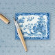 År 1898 skickade en engelsk gentleman jul- och nyårshälsningar till familj, vänner och bekanta med ett litet vikt kort. Framsidan var prydd med en klassisk blå pilträdsmotiv och hans guldbokstavsprydda monogram. Insidan förmedlade hans vänliga meddelande och datum. För våra syften har monogrammet tagits bort och vi har en charmig orientalisk teckning i klassisk blå färg. Det är en underbar design för heminredning, kläder, korrespondens och personliga accessoarer.