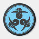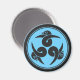 Dekorera ditt kylskåp med denna coola runda magnet med en japansk "Three Geese" japansk Kamon i mörkgrått på blå. Kanten är mörkgrå.