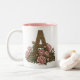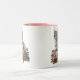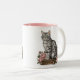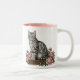 Skapa din egen unika och eleganta mugg med denna vackra vintage-inspirerade monogramdesign med en detaljerad illustration av en tabbymaskot omgiven av mjuka blommotiv.