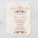 En elegant och vacker julgran-tallkottsbröllopsjubileums-inbjudan med en formell och vintage retro- och antikappell. Frostiga tallkottar, akvarell- och målad look rosa, röda och vita julrosor och blommor, snöiga ekollon och julbärsfrukter bildar en vacker vinterlaurbärkrans. Gyllene blomsterornament och ett rött band i en rosett fullbordar den festliga looken hos denna vintertema-jubileums-inbjudan. Den kan anpassas för det lyckliga paret som firar sitt 10:e, 15:e, 20:e, 25:e, 30:e, 40:e, 50:e, 60:e eller något annat års jubileum. Konst © Chrissy H. Studios, LLC. Med ensamrätt.