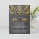 En elegant design för en inbjudan med en delikat guldprägling i filigran-damaskmönster för ditt BRÖLLLOP eller annan evenemang, till exempel en FÖRLOVNING eller en SPETIALHÖGTID.
