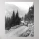 Ett gammalt foto av Detroit Electric auto från Seattle till Mt Rainier. En av de första elbilarna. 1900-talets foto från tidigt på bergsvägen i Washington, 1919.