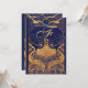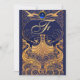 Antik farkost,Delfiner,Guld, Marinblå monogram Inbjudningar