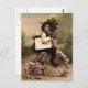 Romantiskt antikt vykort med fina gamla bilder av en pojke på två hjul omgiven av blommor och ett brev i händerna. Detta vykort med nostalgi-känsla är perfekt för att skicka födelsedagsgratulationer till dina vänner som gillar antikt och retro