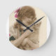 Antik fotoVictoriankvinna och hund Rund Klocka