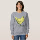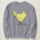 Stående vintage kyckling kvinna sweatshirt. Dämpad mjuk gul höna teckning i profil, fjädrar graciöst konturerade. Fångar essensen av lantlig gårds liv.