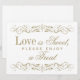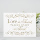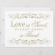Välkommen gästerna till din dessert- eller presentbord med denna antika guld scrollwork "Kärlek är Sött, Varsågod ta en Godis" skylt. Ornamentala rullborder inramar den charmiga texten i elegant typografi och skapar en förfinad avslutande touch för din sötsaksstation. Den klassiska guld på vit design passar sömlöst med den fullständiga rullborder-pappersserien. All text är fullt anpassningsbar.