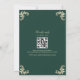 Gör din speciella dag verkligt oförglömlig med vår lyxiga antika smaragdgröna bröllopsinbjudan. Denna eleganta design visar upp fantastiska gyllene viktorianska blomaccent, som sömlöst kombinerar raffinerad sofistikering med tidlös charm. En perfekt representation av en kärlekshistoria som ska firas med stil. För extra bekvämlighet kan du inkludera en personlig QR-kod på baksidan för smidiga online-svar och enkel åtkomst till din bröllopswebbplats, vilket säkerställer en smidig och sömlös upplevelse för dina gäster.