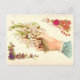 Vacker bild från ett gammalt vykort. En hand erbjuder Liljekonvalj. En gåva av fred, vänskap eller kärlek. Perfekt för påskhälsningar, lyckönskningskort, tackkort.
