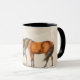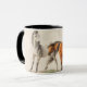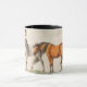 Denna hästmugg har ett par vintageillustrerade hästar. Jag har behandlat bilden med en akvarellteknik för att ge den en konstnärlig prägel. Handtaget och insidan av muggen är svarta för att komplettera konstverket.