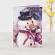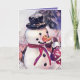 Gammalt tecknad snorman med hatt och halsduk i snön