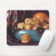 Antik mat, valnötter och frukt i en blå skål musmatta