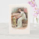 Målningen "Willie's sång" med vacker ung viktoriansk mor som spelar piano medan hennes son tittar på. Konst av Maude Goodman. Inuti finns redigerbart mormorsdags-hälsning, textfält och kompletterande blomster-grafik.