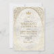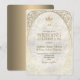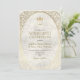 Bjud in dina gäster i tidlös stil med denna vintageinspirerade bröllopsinbjudan, med en lyxig elfenbensmarmorerad bakgrund och invecklad förgylld blomsterkant. Den ovala ramen och monogrammärket ger en kunglig touch, medan den eleganta serif- och scripttypografin förenar sofistikation med romantik. Perfekt för klassiska, formella eller exklusiva bröllop, denna helt anpassningsbara inbjudan passar både traditionella ceremonier och storslagna mottagningar. En stående pjäs i din lyxiga brölloppssvit.