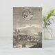Vintage illustration astronomi och celesta svartvita renässans era antikt träsnitt av ett landskap och månen (lune) på natthimlen med stjärnor och stjärnbilder. Människor står bredvid en flod, bro och byggnader. Skapad 1683 av Allain Manesson Mallet (1630 – 1706), en fransk kartograf och ingenjör.
