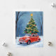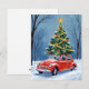 Antik röd bil julgran julkort
