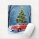 Antik röd bil julgran musmatta