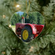 Antik röd lantgårdtraktor julgransprydnad keramik
