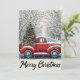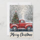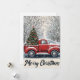 Fira säsongen med detta mysiga julkort som visar en gammal röd pickup som kör på en snötäckt väg omgiven av frostiga träd. I flaket står en vacker dekorerad julgran som gnistrar med röda dekorationer, lysande lampor och en röd stjärna högst upp. Lätta snöflingor faller över det fridfulla vinterlandskapet medan den kraftiga ”God Jul”-texten ger en glad touch – perfekt för att sprida värme och tradition till nära och kära.