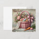 Hej! Tänk dig att ta emot ett förtjusande vintage rustikt korgkort med pastellägg och morötter, det är som en liten nostalgisk bit blandad med vårglädje i dina händer. Den charmiga kombinationen av den vintage rustika korgen, pastelläggen och morötterna som avbildas på kortet ger en känsla av värme och nyckfullhet. Det är den typen av kort som omedelbart ger dig ett leende på läpparna och för dig tillbaka till en enklare tid, med minnen av rustik lantlig charm sammanflätad med påskfirande. Perfekt för att skicka hjärtliga önskningar till nära och kära under högtiden, kommer detta kort säkert att bli en älskad och rörande minnessak.