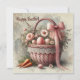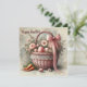 Antik rustik korg med pastellfärgade ägg och moröt julkort