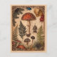 Antik vykort från skogsmark med en illustration i naturalhistorisk stil från den viktorianska eran: en storslagen röd flugsvamp omgiven av mindre svampar, ormbunksblad, bär, fröbaljor och skalbaggar på en gammal pergamentbakgrund med utsirade hörndekorationer och en varm ockrafärgad ram. Baksidan innehåller den korta sentimentala texten ”Till likasinnade som söker små underverk – må nyfikenheten leda er till någonstans vackert.” (fullt redigerbar) eller kan lämnas tom. Perfekt för höstkorrespondens, brevpennsvänner, cottagestil-dekoration eller inramning som ett litet konsttryck.