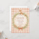 En charmig skogsinspirerad babyshowerdesign med en söt akvarellräv som vilar ovanför en delikat blomsterkrans. Mjuk grönska, små svampar och vilda blommor skapar en mysig skogsram, färdig med ett varmt band och en mjuk persikofärgad gingham bakgrund. Den vintageillustrationsstilen för sagoböcker och den milda jordnära färgpaletten ger designen en fantasifull känsla av en skogsmälnursery, perfekt för att fira en liten en i en varm och magisk skogsmiljö.