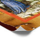 Forntida medeltida italiensk miniatyr av pumpskörd sent 1390..Klassisk lantlig scen med gröna blad och pumpor..Del av " Årstidens frukter ".Denna klassiska design med gammaldags bruna pergamenteffekter är perfekt för nutritionister, dietister, cateringar, livsmedelsservice, tillredning eller restaurang, cateringbranschen.