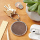 Antik sliten cognackläderstruktur rund silverfärgad nyckelring