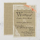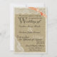 Vintage antik vit spets över det rustika utseendet av säckväv med en söt kanel korallbåge. Anpassa med din egen text och detaljer. Alla delar av dessa inbjudningar är tryckta. Det finns inga faktiska band, spets eller säckväv anslutna.