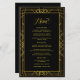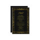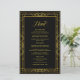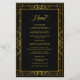 Bröllopsmenyn har en antik guldgeometrisk ram, svart bakgrund och ett elegant antikgult typsnitt.