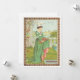 Antik valentinskort av en kvinna som plockar blommor i medeltida klänning. Illustrerad av Kate Greenaway och Walter Crane.