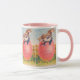 Antik viktoriansk påskhälsning Två kaniner kysser Mugg