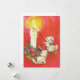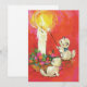 Antika och bedårande Katter Tänder ett ljus med en röd bakgrund och blommor runt ljuset.
