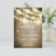 Antika lantliga rustika träd bröllop RSVP-kort - Du kan uppgradera kortmaterialet eller formen på svarsbreven ovan. Kort har lampor eller lysande eldflugor med en rustik träd design. Har en vintage grunge bakgrund med trädgrenar högst upp och slingrande lampor.