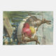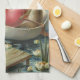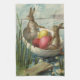 Antika påskharar i en båt med påskägg kökshandduk