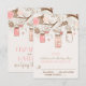 Anpassningsbart RSVP-kort med fantasifull rosa och brun illustration av murarljus, blommor, älskande fåglar och fågelburar. Det är perfekt för shabby chic och vintage-inspirerade evenemang.