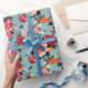 Antika rosor och blommor på en blå bakgrund presentpapper
