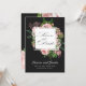 Antik känsla till en elegant inbjudan med rosor i blush och frodig grönska i en gammaldags stil på en svartaktig bakgrund. Kombinerat med serif-teckensnitt som lätt kan anpassas efter dina behov och rosornas ramar är detta ett perfekt val för alla säsonger. Detta passar till svart slips eller bara en ren elegant bröllop med blomsterdekorationer.