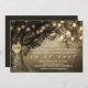 Antika rustika utskurna ekträd bröllopsinbjudningar - med ett vackert ekträd över en antiken slitna bakgrund med strängljus. Du kan "skära" hjärtat till de initialer du väljer. Se hela den matchande designkollektionen på denna sida.